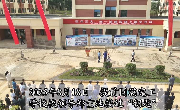 2025年8月18日(星期一)上午,云南大学呈贡校区楸苑学生宿舍项目(1#-6#楼)举行简洁而隆重的“交钥匙”交付仪式。该项目较原计划提前十余天高质量完工,标志着这一重点民生工程顺利完成。云南大学党委书记周学斌,党委副书记吴建德,副校长陈克清、吴涧出席“交钥匙”仪式。基建处、后勤处服务集团相关领导,云南工程建设总承包股份有限公司党委书记及各参建单位负责人共同见证。