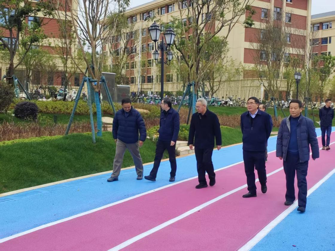 2025年11月3日下午,党委书记周学斌、校长马文会、副校长陈克清带队调研学校1、2号新建运动场投入使用情况,基建处、资产、后勤集团有关同志陪同调研。